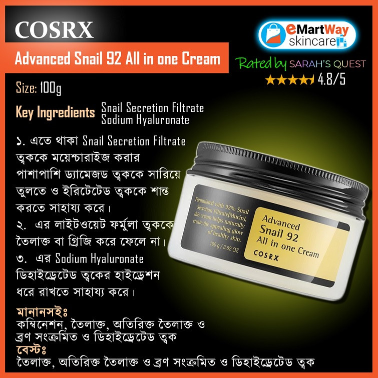 Buy Cosrx Advanced Snail 92 All in One Cream Online in Bangladesh from emartwayskincare.com.bd