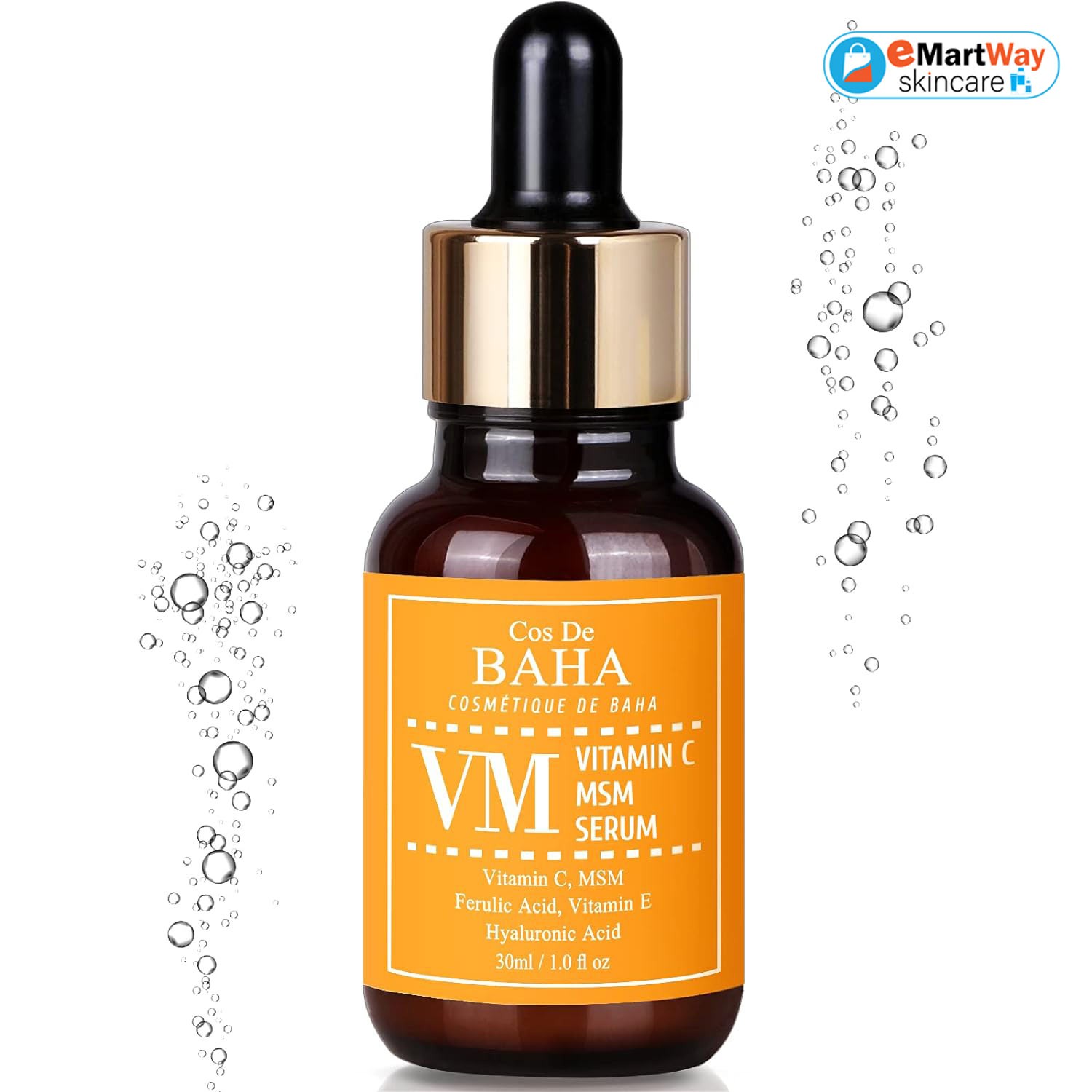 Cos De BAHA Vitamin C MSM Serum (VM) is a fast-absorbing serum, infused with vitamin C, MSM, Ferulic Acid and vitamin E, hydrates and firms your skin while reducing wrinkles for a radiant appearance.