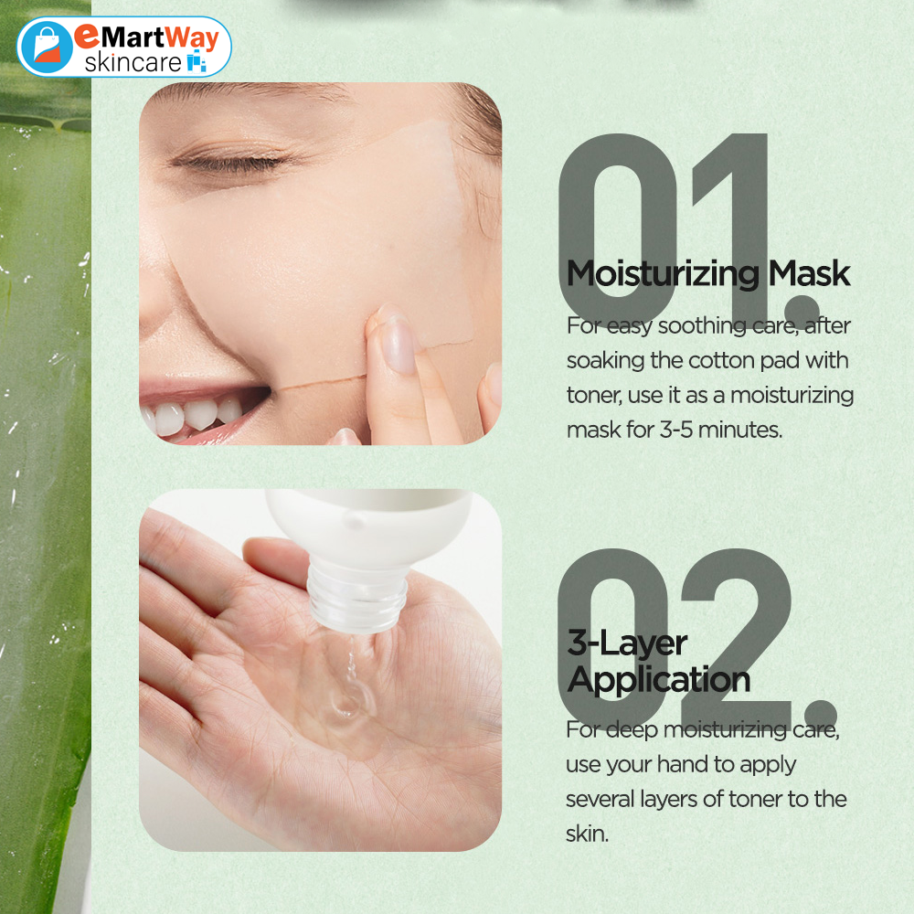 Aloe vera leaf extract , Tromethamibe, Water, Methylpropanediol, Propanediol, Sodium Hyaluronate, Centella Asiatica Extract, Polygonum Cuspidatum Root Extract, Scutellaria Baicalensis Root Extract, Green Tea Extract, Spanish Licorice Root Extract, Matricaria Flower Extract, Rosemary Leaf Extract, Polygluta- matic Acid, Allantoin, Acrylates/C10-30 Alkyl Acrylate Crosspolymer, Dipotassium Glycyrrhizate, Trehalose, Betaine, Panthenol, Disodium EDTA, Hydroxyacetophenone