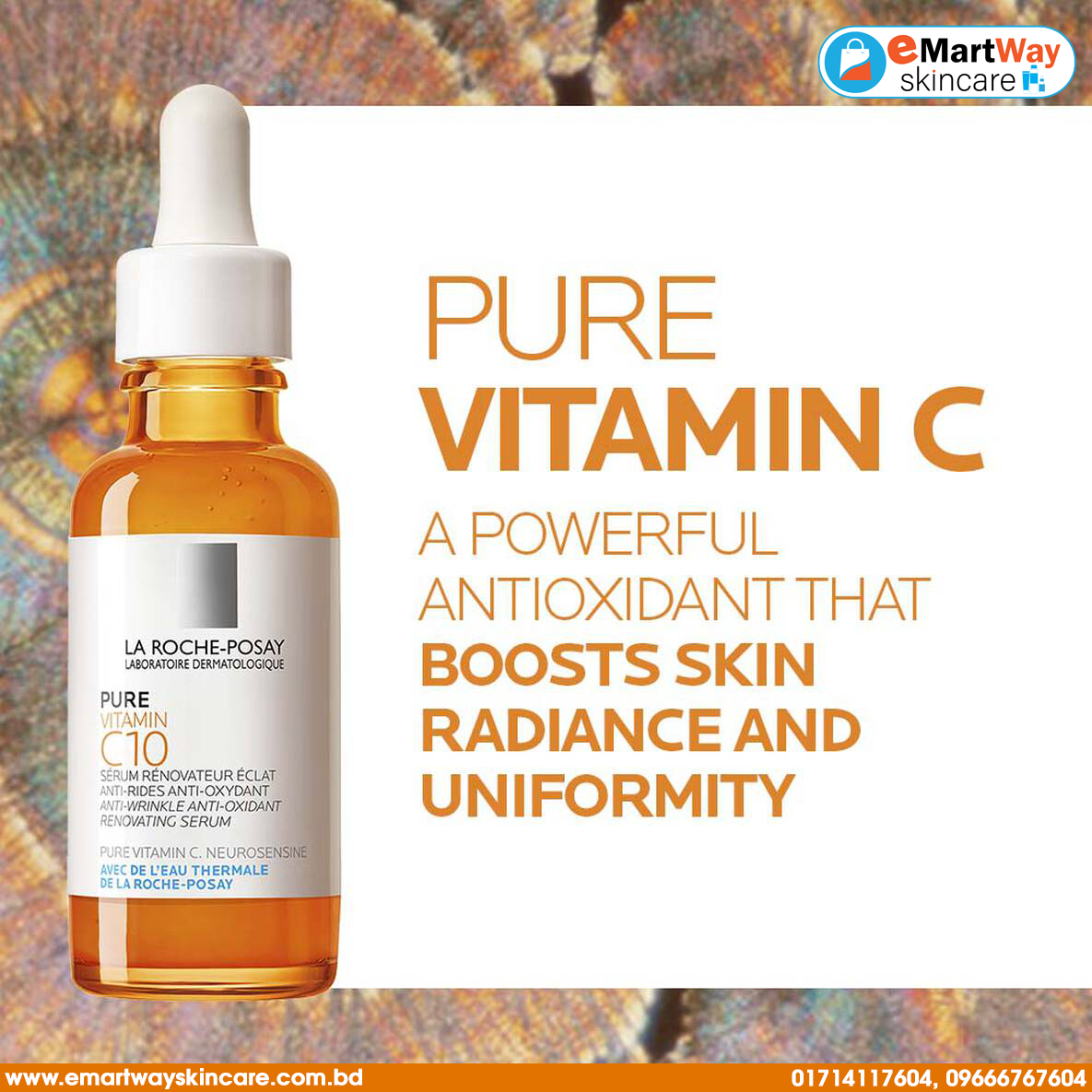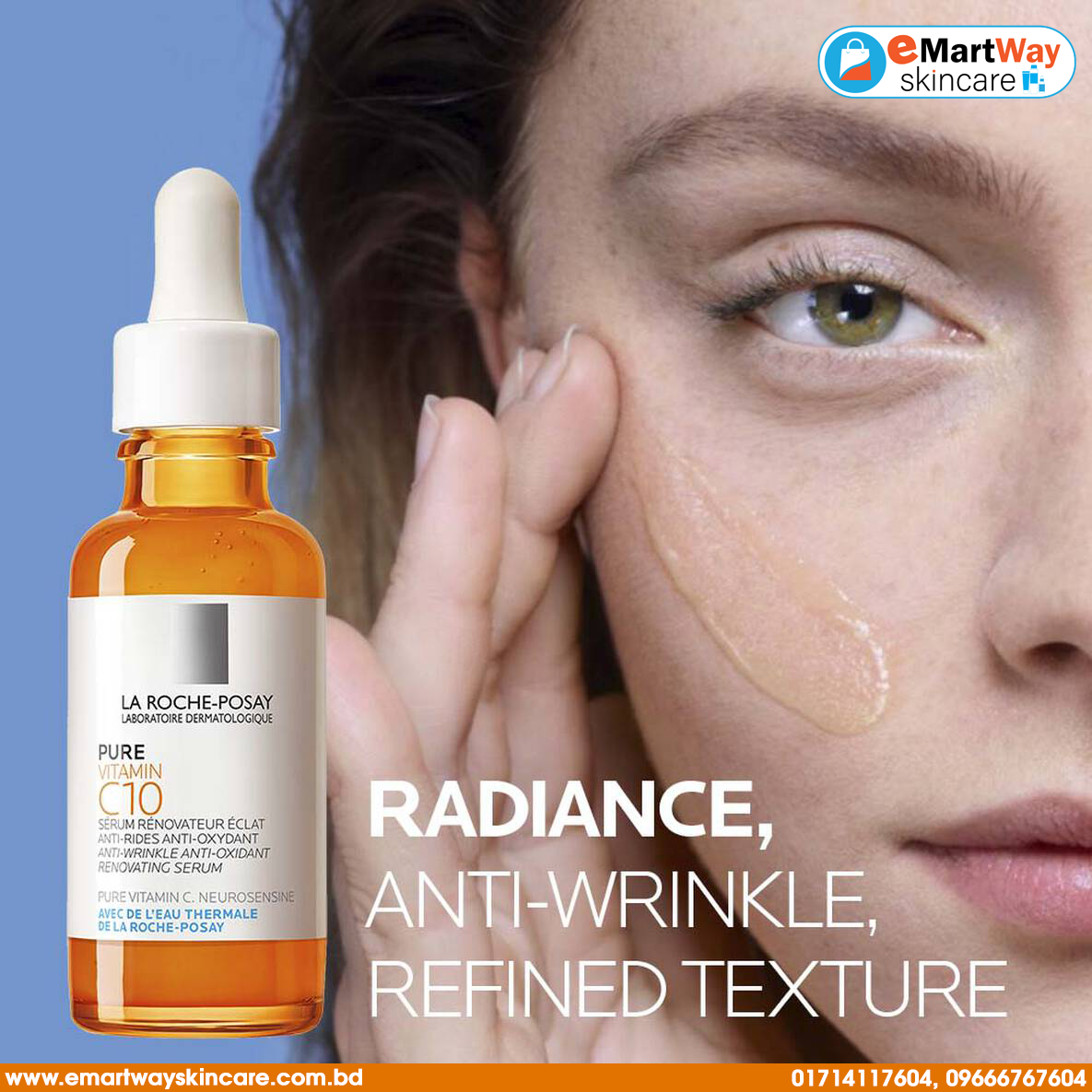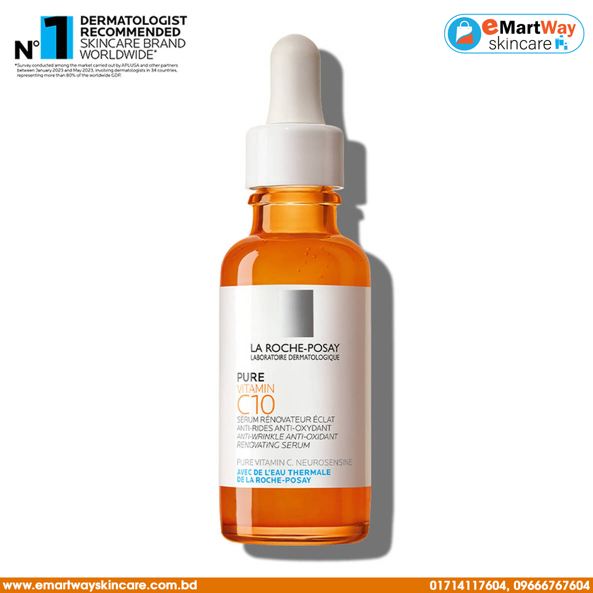 How to use : Apply La Roche-Posay Pure Vitamin C10 Serum to the skin in the morning and evening, while taking care to avoid the eye contour area. Follow the application of this product with an appropriate sunscreen.