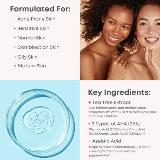 It gently exfoliates, helps control breakouts, and brightens the complexion.